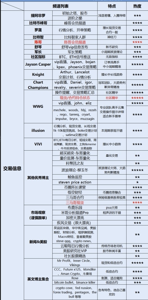 后续将转发Tia提阿非罗、罗晟Criss、比特币峰哥、智哥(比特智)、陈哥(Trader Chenge)、分析师舒琴、比特币军长、三马哥、云聪金融交易分析、rose(rose street trading journal)、wwg(walsh wealth group)、Jayson Casper、柳玉东(波浪理论学习)、币圈所长、Jimmy米哥等等中英文博主的付费社群信息,供订阅用户参考。