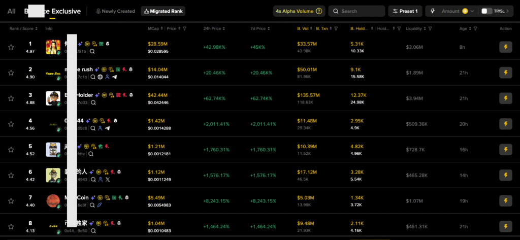当年uniswap.info的最新添加流动性交易列表就是如今binance meme rush的newly created(新建,所谓内盘阶段)的对标;而pool list则是migrated rank(已迁移 = 已正式上链发行,所谓外盘阶段)的对标。不同的是,uniswap从一开始就是链上的,不存在内外盘这种人为设置的控盘围墙。