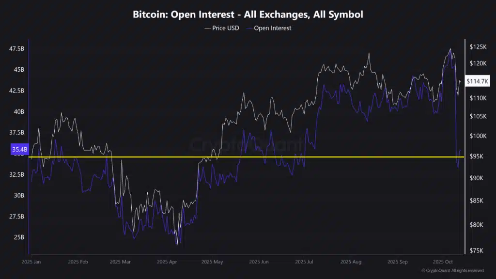 自上周创下近期峰值后,BTC未平仓合约骤减120亿美元,从470亿美元降至350亿美元,成为近年最剧烈的期货仓位收缩事件。