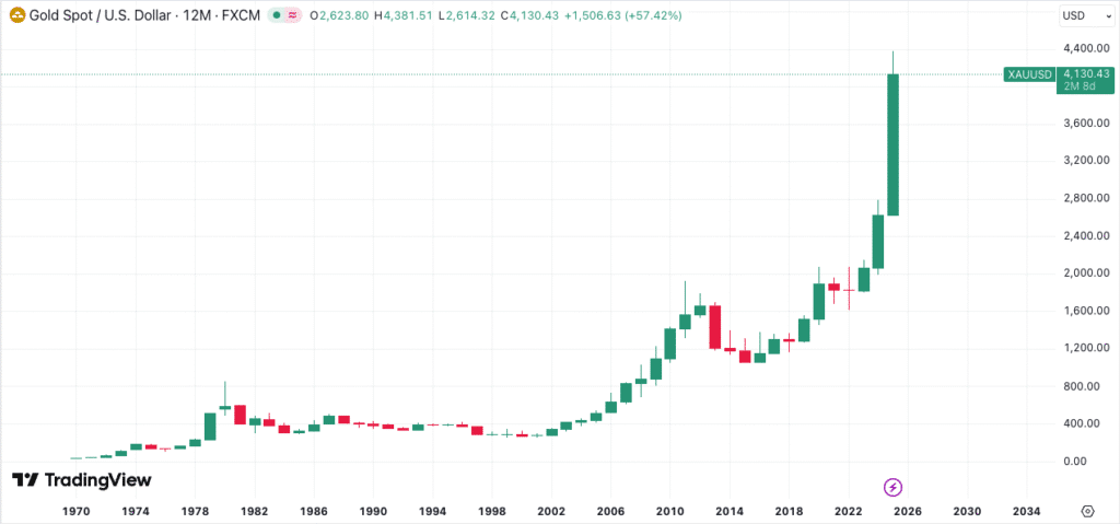 - 长期上涨趋势:从2009年的882美元到2025年(迄今)的4122美元,黄金价格在长期内呈现出强劲的上涨趋势。
