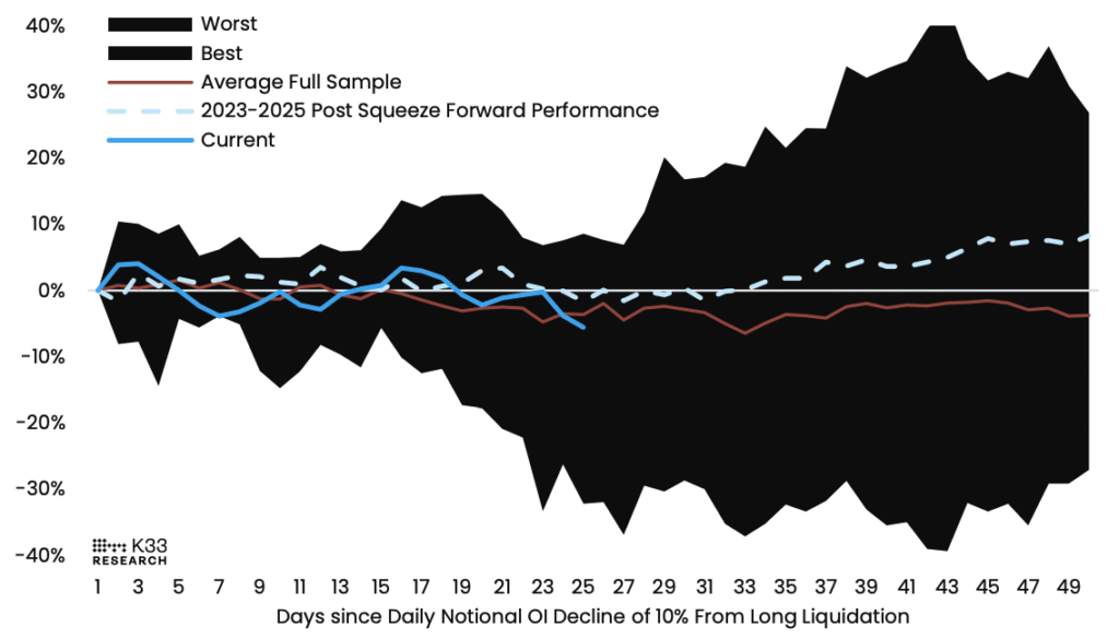 K33称:BTC近期展现出异常疲态,过去一周内下跌9%,跌至2025年6月23日以来的最低水平,并创下自2024年7月以来相对于纳斯达克指数最差的30日表现。此番弱势行情源于10月10日去杠杆事件后持续紧缩的流动性环境与市场弥漫的避险情绪。恐慌驱动下的市场情绪,叠加长期持有者的大规模抛售,共同加剧了跌势——在风险感知高企的背景下,买家纷纷选择驻足观望。