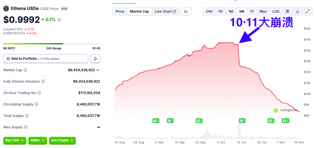 第四,USDe其实从10月11那次市场大崩溃开始,市值规模就开始急剧收缩,现在已经快腰斩了。但是,它却始终没有脱锚。现在看来,它的delta neural(波动率中性)似乎是扛住了考验!