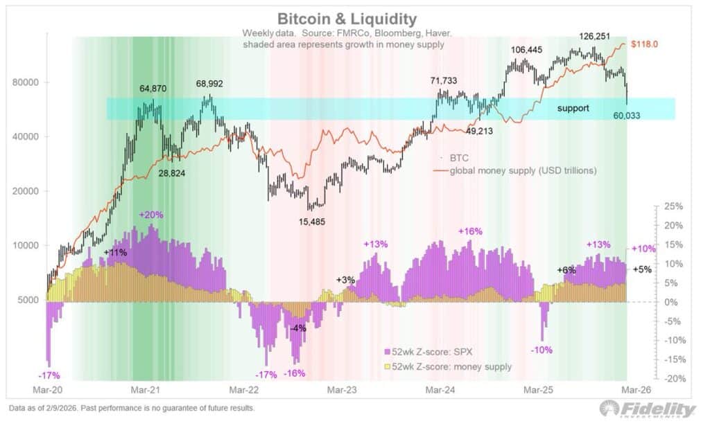 [12]👉 富达全球宏观总监 @TimmerFidelity 2.14发帖:BTC跌至6万美元印证了其几个月前的判断——四年周期牛市已结束。虽然这一跌幅在加密寒冬中相对较浅,但随着BTC作为商品货币日趋成熟,其波动性理应减弱。尽管无人能准确预测底部,但他猜测6万美元可能就是本轮低点,经过数月盘整后,下一轮周期性牛市将启动。基于过往周期的数学规律(虽不保证未来),他预计后续行情有望再创新高。