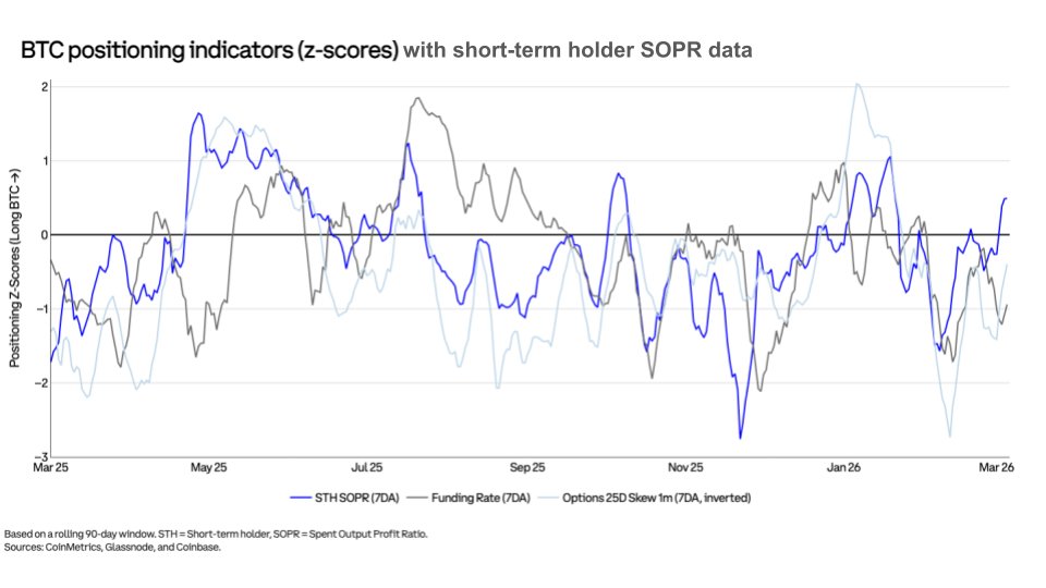Coinbase Institutional 的观察从另一个角度佐证了这一判断。他们关注的短期持有者支出产出利润率(SOPR)在2月底开始出现回升。这一指标衡量的是近期买家是在盈利还是亏损状态下卖出代币。SOPR的企稳回升表明,现货市场的需求已经强大到足以吸收掉那些割肉离场的弱手的抛压,市场的持仓结构正在经历一轮健康的清洗[4]。